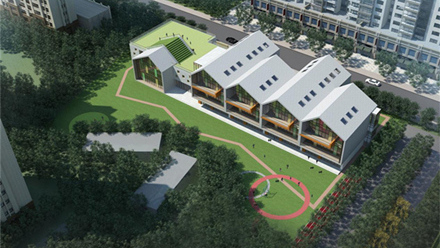 近日由建學杭州分公司設計的杭州成西第三幼兒園項目正式竣工,本項目位于杭州市余杭區臨平新城西南區塊。基地西臨星旋路,星旋路另一側為規劃公園綠地。用地南側隔防護綠地與臨丁路相望,東側與北側與規劃居住用地相接。地塊占地面積7299 平方米(合10.95 畝)。采用裝配式建筑形式。