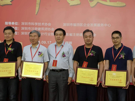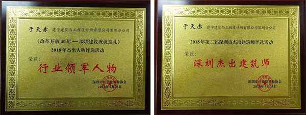 近日,“名師論建——深圳40年建設成就學術高峰論壇”在深圳舉辦。數百名建筑設計人員聚集一堂交流學術,為城市建設建言獻策。會議隆重表彰了為深圳建設作出突貢獻的行業領軍人物、杰出建筑師、杰出景觀園林師等,建學深圳分公司于天赤先生榮獲“《改革開放40年——深圳建設成就巡禮》2018年杰出人物評選活動行業領軍人物”、“2018年第二屆深圳市杰出建筑師”稱號。 下圖為獲獎證書及頒獎情況