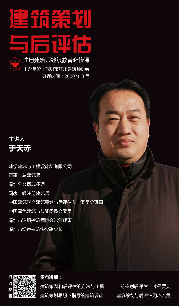近期,深圳市注冊建筑師協(xié)會舉辦“2020年注冊建筑師繼續(xù)教育必修課”培訓(xùn)活動(dòng)。建學(xué)總建筑師、深圳分公司總經(jīng)理于天赤先生受邀參加“建筑策劃與后評估”模塊的網(wǎng)上授課,課程采用理論與工程案例相結(jié)合的方式,與注冊建筑師進(jìn)行交流、學(xué)習(xí)、探討,為大家出作品、做精品提供一套工作方法,促進(jìn)行業(yè)的進(jìn)步。