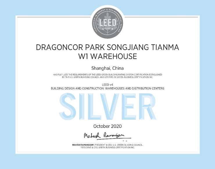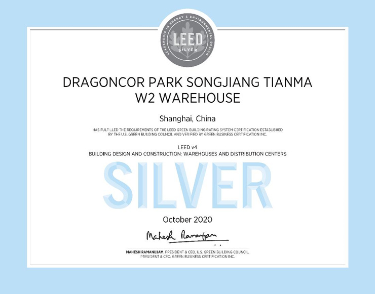 近日,由我司設計的冷鏈物流分裝配送系統升級改造項目取得LEED銀獎證書。