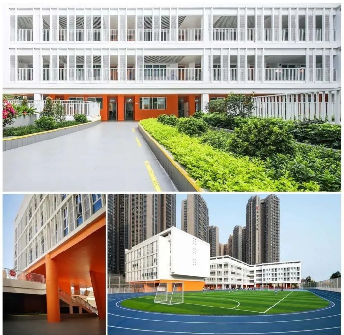 深圳市南灣實驗小學 “深圳市南灣實驗小學”由建學全過程設計,位于深圳市龍崗區南灣街道,用地面積9213.65㎡,總建筑面積22856㎡,容積率為2.48。通過對嶺南民居特點的總結歸納,提出綠色設計“六字法(綠、蔭、透、水、材、能)”,并將這一理念貫穿到設計全過程。適應氣候,充分利用場地高差關系,因地制宜打造一座立體、多層次的綠色校園。