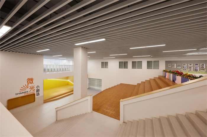 設計中融入了坪山區客家和書院的概念,進行圍合式的布局,形成院落空間;圍合式布局能夠最大化的利用場地,同時創造開闊的庭院空間;建筑整體形象的設計,是對中國傳統書架進行提煉,創造具有書香韻味的校園形象。