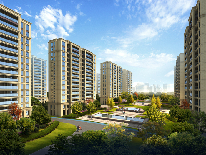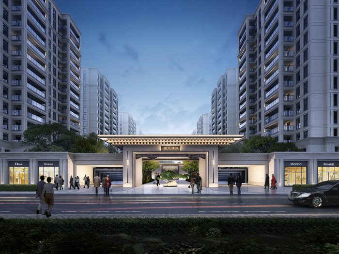 小區整體規劃圍繞中心空間序列布局,同時完善均質化景觀空間結構,暗合風水文化中 “藏風聚氣”的格局。地塊用地方較為方正,地塊均勻布置四排高層,結構簡明,主入口空間軸線,以中間組團空間軸線通過中心庭院軸線,自然的交匯在一起。高層建筑基本采用了統一朝向,體現了小區規劃整體性和均好性的原則。