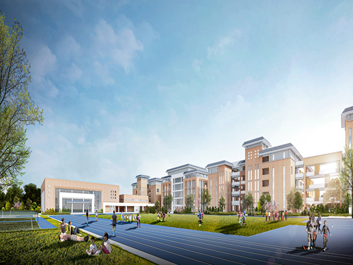 項目均位于廣東省汕尾市,建設用地面積分別為60007m2、49235m2,為新建的72班及54班九年一貫制學校,主體工程包含教學樓、綜合樓、體育館、師生食堂、教師宿舍等,整體規劃中以多樣化的建筑形態靈活布局,分為教學區、運動區、生活區、教學輔助區四個功能區。