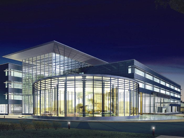 建筑造型以滿足功能需求為目標,外觀上則展現汽車工業建筑應有的純粹與流暢,讓使用者相信自己的直覺與對美的感受。所以我們采用最基本的建筑幾何塊體,構筑成辦公樓與研發中心。不僅在空間上得到高效率的使用,而且在立面的表現上,以簡潔明快的線條,體現汽車工業的精確與速度。