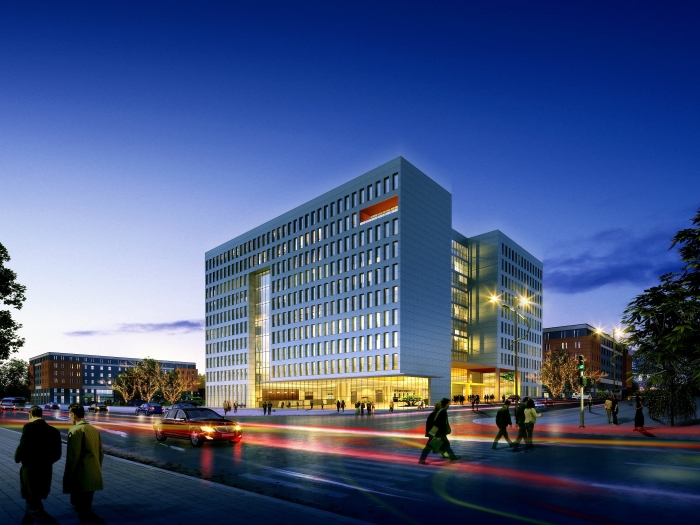 規劃方案充分考慮商貿經營、物流運輸使用要求并注重與自然地形有機結合,在現代實用理念的模式下,重視塑造一個科學、整潔、有序的商貿區,張弛有序的設計,構成豐富的空間層次。外圍商務辦公建筑注重城市景觀的塑造,創造出現代感的城市形象和舒適的城市空間,形成優美的城市輪廓線。