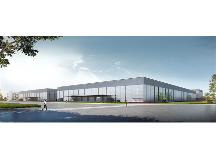 以基地南北中軸線兩邊各布置一棟主廠房,兩棟主廠房通過空中連廊連接各自的夾層空間。同時在主廠房南側(cè)結(jié)合工藝需求布置兩棟廠房,由此構(gòu)成整個園區(qū)的生產(chǎn)布局。基地東側(cè)配建有1#廠房附屬辦公、停車樓、食堂以及倒班樓等配套生活設(shè)施,自成一體的同時又與生產(chǎn)區(qū)緊密聯(lián)系。根據(jù)整個園區(qū)的生產(chǎn)工藝流程,在主廠房的南北側(cè)均布置了裝卸貨場地。園區(qū)流線分明,形成客貨分流、人車分流,使園區(qū)交通高效運轉(zhuǎn),更好的服務(wù)于園區(qū)生產(chǎn)。